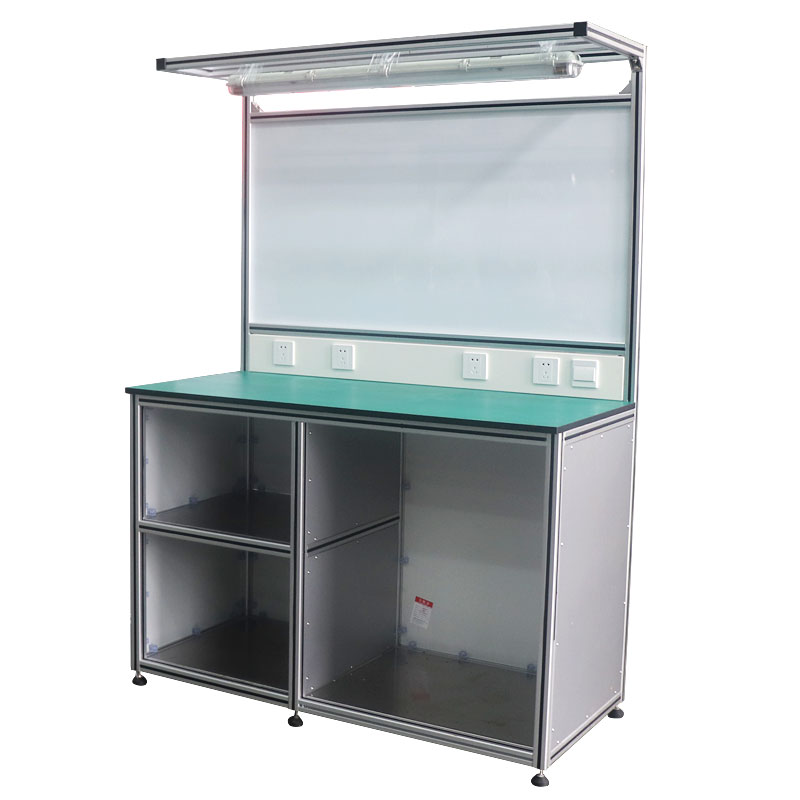 La tabla de perfil de aluminio tiene un marco de perfil, el marco tiene una placa en la parte superior, los lados y la parte posterior pueden tener un revestimiento, el frente del marco tiene una puerta, un cajón, etc., y el costado del perfil tiene Una sección transversal de la cavidad a lo largo del perfil. El surco de la letra, la pieza de conexión en ángulo diédrico recto y la tuerca de la placa cuadrada conectada por el tornillo entre los marcos de conexión verticales del marco. Diseño fácil de usar, ergonomía, modularización de la eficiencia de producción, una variedad de accesorios pueden ser combinados e intercambiables arbitrariamente; Diseño estandarizado, banco de trabajo antiestático, banco de trabajo de aluminio se puede personalizar de acuerdo con diferentes requisitos encimeras de alta calidad con resistencia antiestática/de fuego/desgaste; Altura de la mesa de aleación de aluminio ajustable, adecuada para sus necesidades; soporte con diseño de estructura de acero, duradero y puede transportar 500 kg de manera uniforme; La electricidad estática elimina fundamentalmente la amenaza de la electricidad estática potencial a los productos.