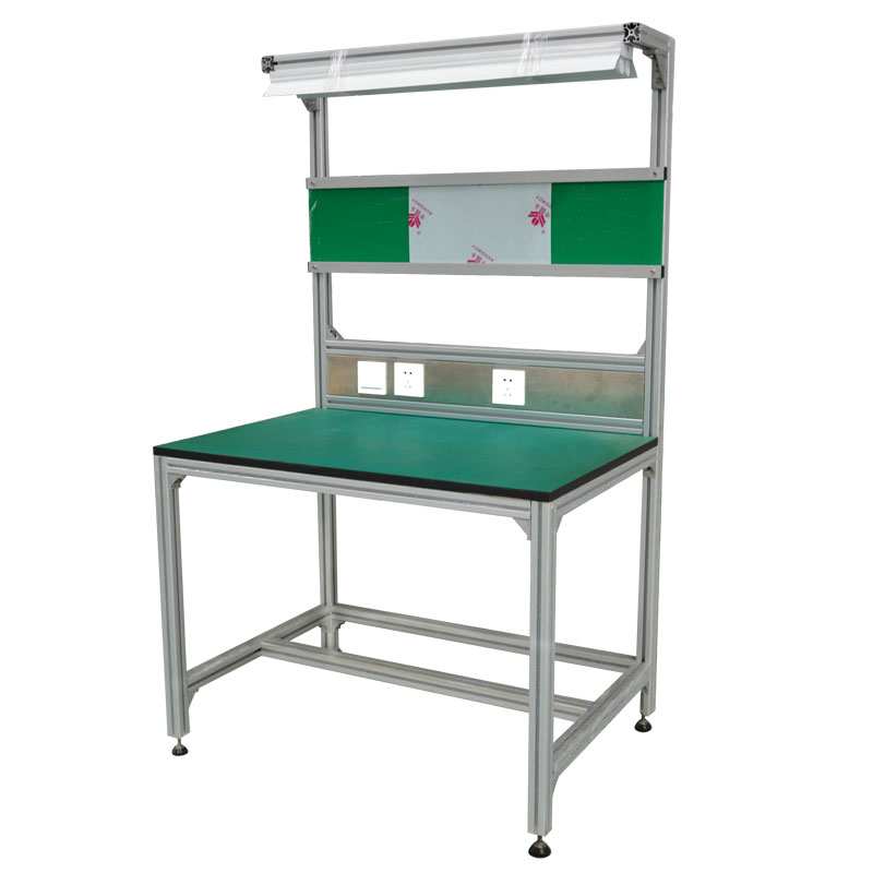 La tabla de perfil de aluminio tiene un marco de perfil, el marco tiene una placa en la parte superior, los lados y la parte posterior pueden tener un revestimiento, el frente del marco tiene una puerta, un cajón, etc., y el costado del perfil tiene Una sección transversal de la cavidad a lo largo del perfil. El surco de la letra, la pieza de conexión en ángulo diédrico recto y la tuerca de la placa cuadrada conectada por el tornillo entre los marcos de conexión verticales del marco. Diseño fácil de usar, ergonomía, modularización de la eficiencia de producción, una variedad de accesorios pueden ser combinados e intercambiables arbitrariamente; Diseño estandarizado, banco de trabajo antiestático, banco de trabajo de aluminio se puede personalizar de acuerdo con diferentes requisitos encimeras de alta calidad con resistencia antiestática/de fuego/desgaste; Altura de la mesa de aleación de aluminio ajustable, adecuada para sus necesidades; soporte con diseño de estructura de acero, duradero y puede transportar 500 kg de manera uniforme; La electricidad estática elimina fundamentalmente la amenaza de la electricidad estática potencial a los productos.